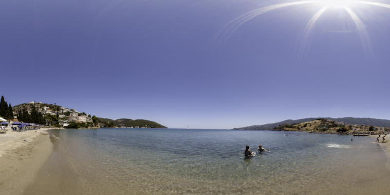 Across the Aegean and nearly rubbing elbows with the Peloponnese, Poros is charming and not accessible to the cruise boats. Off the ferry, we ask the nearest cab driver to take us to the nearest beach. It turns out to be Kanali, which will do just fine.